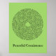 Animal group names (like "An exaltation of larks"), including human beings, are arranged in a meditative spiral on a serene green background on this poster with the words "Peaceful Coexistence" printed below it. The poster is a graphic way to make a bold philosophical statement. Feel free to customise the poster to make it distinctly yours.