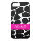 A bold mono and hot pink coloured animal print iphone case. This original pattern by Sarah Trett, is based on the patterning found on a giraffe. A great case for outgoing girls, bold ladies and trendy teens. With this bright colour finding your phone will be easy. Customise with the name of your choice currently reads Michelle.