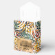 A colourful wild leopard print pattern tent style favour box closes with a ribbon and features your thank you message on the front in chic lettering on gold faux foil on the front. Beautiful for woman's birthday party favour boxes, bridal shower boxes, girls night out and more. MATCHING items in our store.