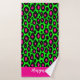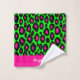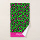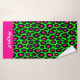 elegant black and neon green fuchsia animal print leopard pattern monogram name bath towel set, animal print leopard bath yoga mat,