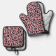Animal Print, Pink Leopard, Cheetah Spots, Hearts Oven Mitt & Pot Holder Set