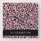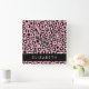Animal Print, Pink Leopard, Hearts, Your Name Square Wall Clock