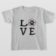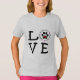This girl's ringer t-shirt shows your love for animals and animal rescue. The word "love" is spelled with the letter O represented by a paw print with a red heart inside surrounded by the words adopt, foster and rescue separated with purple paw prints. This is a great gift for your daughter or any animal lover. This could also be used by animal shelters as a raffle item or in a silent auction fundraiser or 5K run prize.