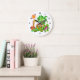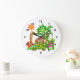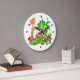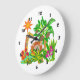 Animal Safari wall clock with black numbers, a giraffe, lion, jungle plants, and sun!