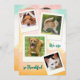Animal shelter thank you for adopting a pet card. Watercolor painted background with four photo templates on the front. Add a shelter animal photo, or photos of workers / volunteers, to each template. You may also use the photos shown. Wording on the front is, "We are so thankful" and continues onto the back with, "for people like you". A heart-shaped photo template on the back can be used to add a photo of the person, or family, with their adopted pet. Include the shelter name, address, online presence, and contact information at the bottom.