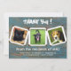 Animal shelter thank you cards with place for three photos. Thank people for donations or for attending / volunteering at a fundraising event. Rustic blue wood design with three old-fashioned photo album frames. Add three photos of some of the shelter residents. Text is white with big "thank you" at the top. And beneath the photos, "From the residents of (shelter name)". Also include smaller text with more information as needed. The reverse also has a rustic wood image with a horseshoe. This design can also be purchased as an instant download.