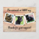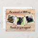 Postcard with animal photo templates on the front and two lines of custom text. Made as a "thank you" from the animals at a shelter or rescue site. The background is wood grain appearance and each photo is framed in white, with old-fashioned corner tabs design. Reverse is blank. Replace the cat and dog photos with your own. As a side note, all animals shown were adopted members of my own family.
