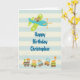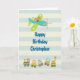 Animal Toy Train and Aeroplane on Stripes Birthday Card