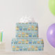 Animal train spelling out “baby” wrapping paper. So cute with matching baby boy shower invitation. Simple and sweet.
