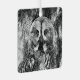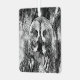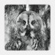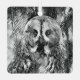 Graphic portrait of a great grey owl in black and white