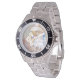 Has heft and feel of expensive stainless steel quartz watches. Good band with safety catch. I removed links, which is easy because engraved arrows show direction to push the linking pins. As always by this seller, the image (a railroad logo) is a perfect reproduction of my emailed image, and is precisely spaced and aligned.