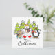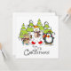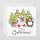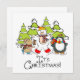 A cute, colourful Christmas holiday design flat card featuring a polar bear, penguin, and mouse all with scarves and ice skates with snow covered trees and text that reads It's Christmas!