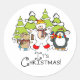 A cute, colourful Christmas holiday design sticker featuring a polar bear, penguin, and mouse all with scarves and ice skates with snow covered trees and text that reads It's Christmas!
