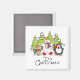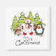 A cute, colourful Christmas holiday design magnet featuring a polar bear, penguin, and mouse all with scarves and ice skates with snow covered trees and text that reads It's Christmas!