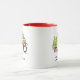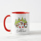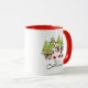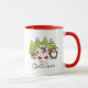 A cute, colourful Christmas holiday design mug featuring a polar bear, penguin, and mouse all with scarves and ice skates with snow covered trees and text that reads It's Christmas!