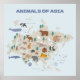 Animals of Asia Illustrated Map Poster