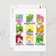 Animals on Parade postcard features various colourful animal images and kid style text. Animals include the hippo, giraffe, monkey, bull, lion, elephant, pig, zebra, and sheep.
