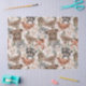 Cute watercolor colourful baby woodland animals pattern with leaves