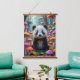 Animated Panda Cub in a Forest of Mushrooms Hanging Tapestry
