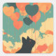 Anime Black Cat with Heart Shaped Balloons Square Sticker