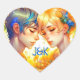 Anime Boy and Girl Floral Couple Personalised Heart Sticker