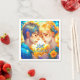 Anime Boy and Girl Floral Couple Personalised Napkin