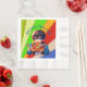 Personalised birthday boy paper napkins for a boy's pizza birthday party. Cute anime boy holding a piece of pizza with a colourful pop art background.