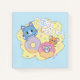 This captivating anime-style graphic features the iconic duo "Tom and Jerry" along with their little friend Tuffy in a sugary adventure. Tom, the blue cat, gleefully holds onto a giant lavender doughnut, his eyes twinkling with playful mischief. Beside him, Jerry, the clever brown mouse, shares a pink frosted doughnut with Tuffy, the small grey mouse, both peeking out with expressions of joy and curiosity. The background bursts with a pastel yellow hue adorned with colourful sprinkles, enhancing the festive and whimsical atmosphere. This image is a vibrant celebration of friendship and playful antics, encapsulating the beloved characters in a delightful, dessert-themed setting.