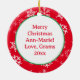 Anime kids in Santa hats holding toys themed personalised Christmas ornament.