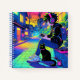 Colorful anime gamer sitting with his cat ready for next level gaming. Spiral sketch notebook.