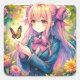 Anime Girl and Butterfly Watercolor Ai Art Square Sticker