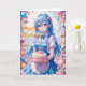 The soft, colorful palette and dreamy background create a playful and heartwarming vibe, making this card perfect for anyone who loves anime, kawaii art, and cute celebrations.
