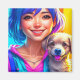 Christmas ornament. Pretty blue haired brown eyed anime girl with a puppy dog Ai generated artwork. Cute for a pre teen or teenage girl who likes anime. generativecontent