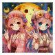 Anime Girl Hippie Moon Girls Giving Peace Sign
