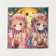 Anime Girl Hippie Moon Girls Giving Peace Sign Tapestry
