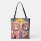 Anime Girl Hippie Moon Girls Giving Peace Sign Tote Bag