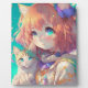 Anime Girl Holding an Adorable Kitten Plaque