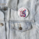 A cute anime girl on a unicorn with rainbows, butterflies, flowers and balloons in pink, blue and purple girl's Birthday girl button. In purple, pink and blue.