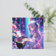 Pretty anime girl playing the piano surrounded by stars and flowers in purple, blue and pink.