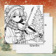 Christmas themed colouring card. Pretty festive anime girl playing the viola in front of a decorated Christmas tree.