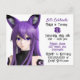 Girl's Birthday Invitations. Purple and black anime girl with fox ears and stars graphics.