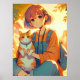 Indulge your love for anime with this charming poster featuring a serene anime girl accompanied by her faithful feline companion. Perfect for fans of whimsical art, this poster captures a tranquil moment of companionship between the girl and her cat, adding a touch of warmth to any space. Elevate your decor with this delightful piece that celebrates the bond between humans and their furry friends