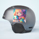 Beautiful Anime girl with two different coloured eyes holding an adorable puppy. Colours used are pink, orange, blue, purple and blue. Cute and colourful children's Ai art. generatviecontent