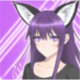 Pretty purple eyed anime girl with fox ears on and purple hair ai art.