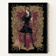This anime-style illustration captures the essence of Hermione Granger, one of the central characters from the Harry Potter series, known for her intellect and determination. Hermione stands confidently, her wand ready in hand, against a backdrop of luxurious golden floral patterns on a rich maroon background. Accompanied by her loyal cat, Crookshanks, who sits regally beside her, this artwork highlights Hermione's scholarly attributes and her readiness to face any challenge. The detailed art style emphasizes her thoughtful expression and the dynamic movement of her hair and robes, reflecting her active and engaged nature.