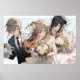 Anime style painting of two men and a woman in a male-female-male polyamorous triad on their wedding day.