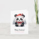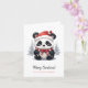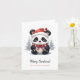 Anime Panda Santa Merry Christmas Greeting Card. Kawaii style black, white and red colours panda bear with Santa hat and a red shawl. Personalised text.