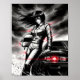 Anime Racing Storm - Female Street Racer in Sumi-e Poster