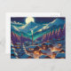 Anime Style Winter Village Snowy Night Scene Postcard
