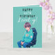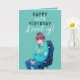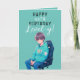 Anime Teal and Black Gamer Custom Age Birthday Card
